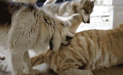 ▲二哈做的更绝,居然还想让母老虎生下一窝小二虎?