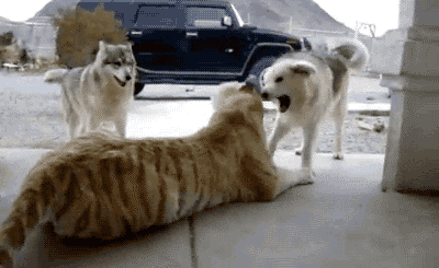 ▲老虎的主人看到这一幕估计都气疯了,这还哪里有老虎的样子,被两只狗欺负成这样