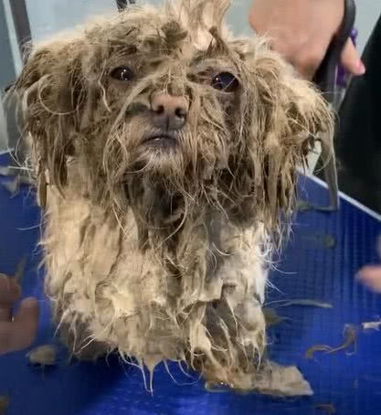 街头的流浪狗越来越多,但是却没有几个好心人会伸出手去帮助它们。前不久一位男子在路边看到了一只狗狗,这只狗狗全身都是泥土,毛发也特别的长。男子非常同情这只狗狗,还将这只狗狗送到宠物店。