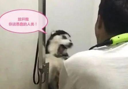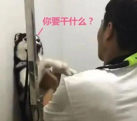 哈士奇洗澡也一直是主人们的困扰,有的哈士奇是非常的听话,但是有的哈士奇简直就是能闹翻天的那种。这不,网络上就有一个是哈士奇的主人,因为在家三个人都没有办法给哈士奇洗好澡,就带着一肚子的火去来宠物店,希望宠物店的老板能够好好管教一下它,实在是太不听话了!但是一看到宠物店老板,哈士奇都非常的震惊,主人拍下照片后还给哈士奇加上了文字,看到老板后哈士奇的内心是:“你要干什么?