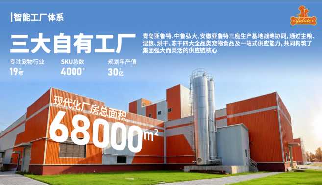三大智能工厂规划年产值,总计超过30亿元。覆盖宠物食品全品类的高度自动化的制造体系,是实现卓越品质、极致效率与柔性定制能力的坚实保障,为亚鲁特集团“一站式全品类宠物食品智慧供应链”,构筑了强大而灵活的核心壁垒。