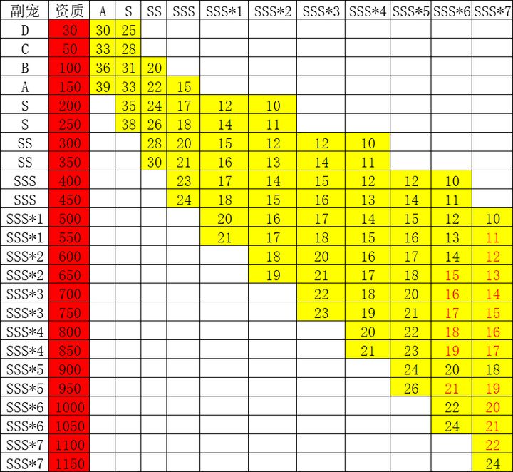 实际上,我们主力宠物资质都在380以上,属于SS或SSS级别,升到三星SSS大约需要吃15次。